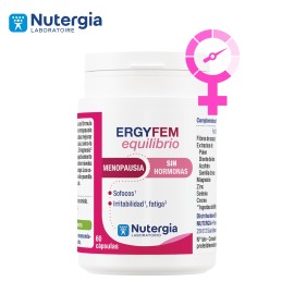 ERGYFEM EQUILIBRIO 60 CAP NUTERGIA es una fórmula vegetal sin hormonas, beneficiosa para las mujeres durante la menopausia. El azafrán es una planta reconocida por mejorar los signos de la menopausia. Otros 3 extractos vegetales completan la fórmula: extractos de polen, diente de león y semillas de uva. ERGYFEM Equilibrio ofrece una solución sin actividad fitoestrogénica, por lo que no tiene contraindicación alguna.